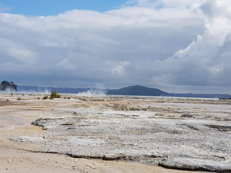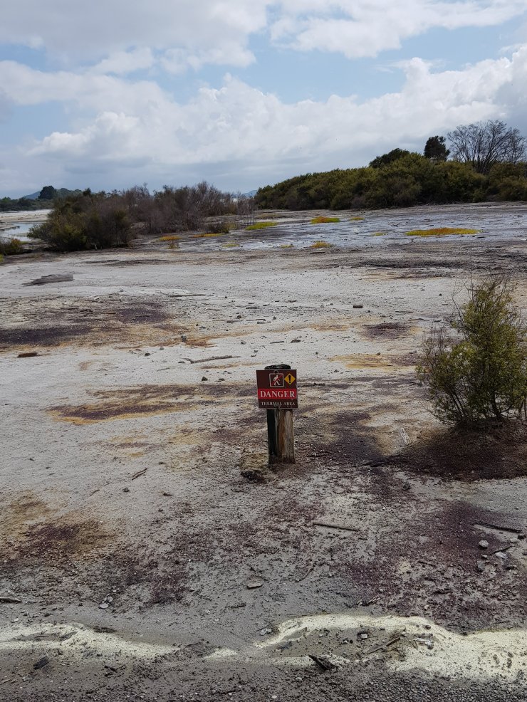 Die 53.000 Einwohner Stadt Rotorua, die in Mitten der Nordinsel liegt, ist vor allem für ihre geothermischen und vulkanischen Aktivitäten bekannt. Unmittelbar am Stadtzentrum gelegen, befindet sich der Rotorua See. Läuft man an seinem Ufer entlang, trifft man immer wieder auf heiße, giftige Schwefeldämpfe und blubbernde Pfützen. Die Bilder im Anhang verdeutlichen wie lebensfeindlich und unwirklich dieser Ort in Rotorua eigentlich ist. Es ähnelt dem Berühmten Tanz auf dem Vulkan und dennoch schaffen es bspw. Vögel am Rande der schwefligen Pfützen zu nisten.