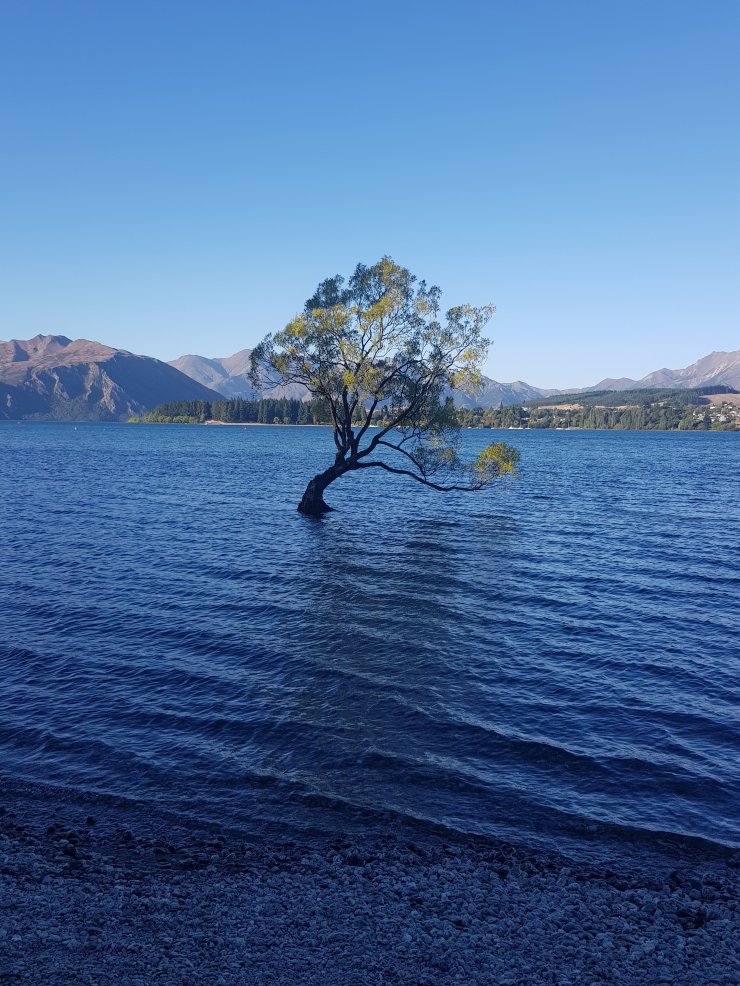 Die kleine Stadt Wanaka liegt direkt am gleichnamigen See. Im Winter dient der Ort als Hauptquartier für Wintersportler*innen, im Sommer kann man sich an den See legen und die Aussicht genießen. Größte Sehenswürsigkeit ist der Baum im Wasser. Wer möchte kann sich auch in ein Restaurant oder eine Bar mit Blick auf den See begeben.